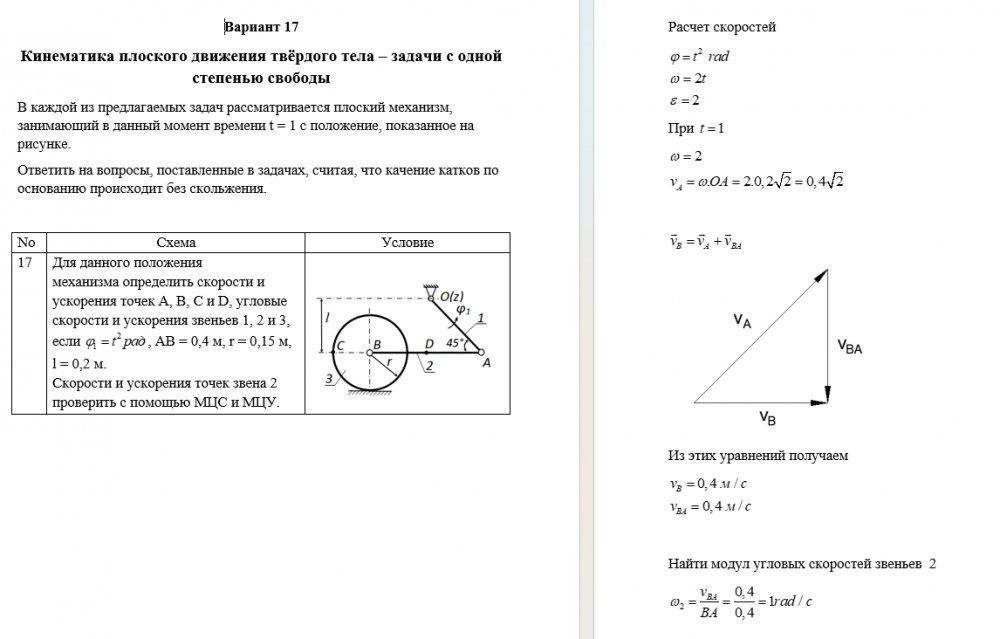 ДЗ 2: Кинематика плоского движения твердого тела вариант 17
