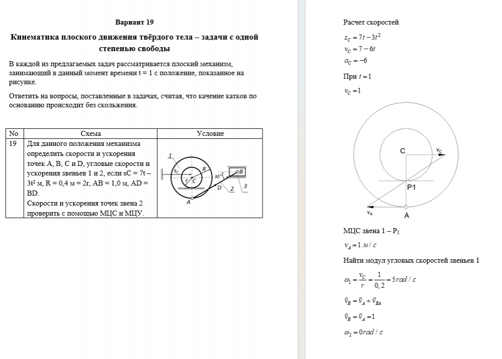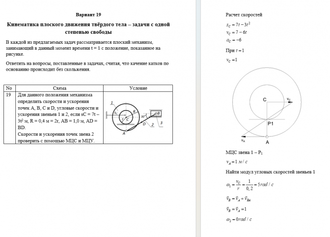 ДЗ 2: Кинематика плоского движения твердого тела вариант 19