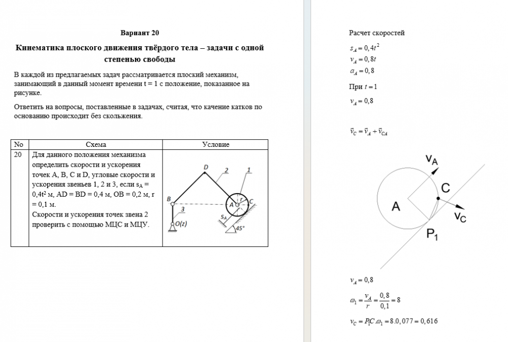 ДЗ 2: Кинематика плоского движения твердого тела вариант 20