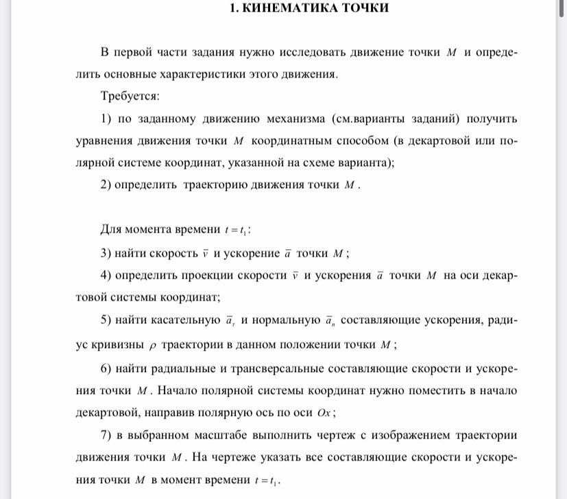 ДЗ 1: Кинематика точки и простейших движений твердого тела вариант 29