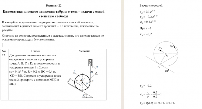 ДЗ 2: Кинематика плоского движения твердого тела вариант 22