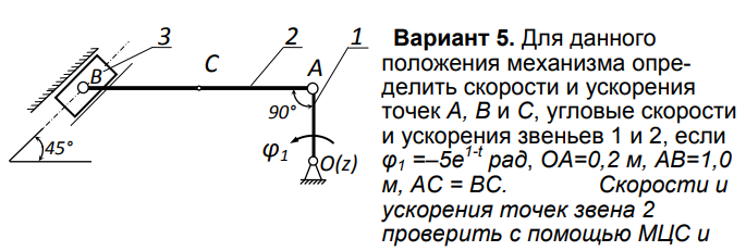 Вариант 5 - Дз-2 "Кинематика плоского движения твердого тела"