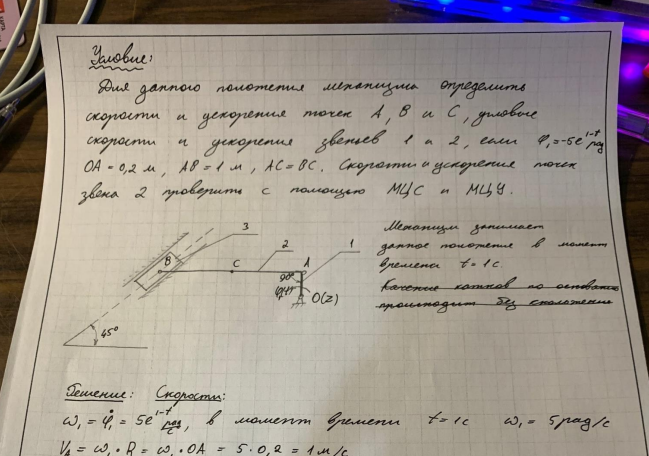 ДЗ 2: Кинематика плоского движения твердого тела вариант 5