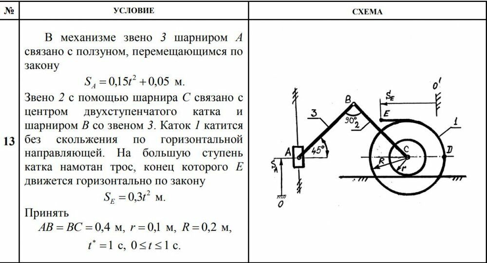 ДЗ 2: Кинематика плоского движения твердого тела вариант 13