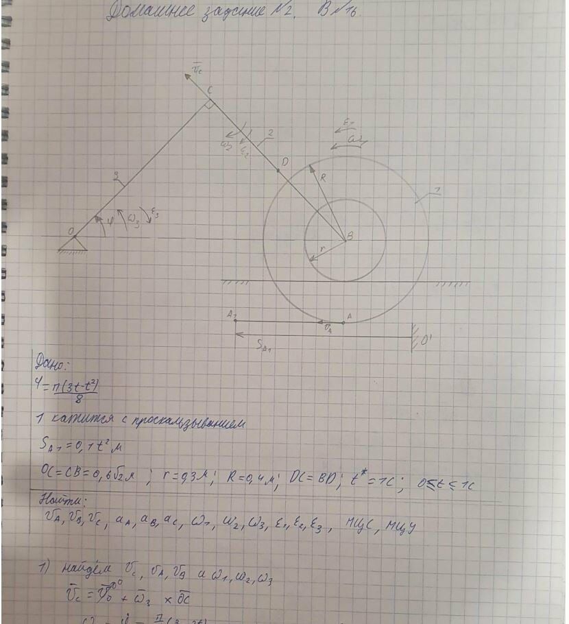 ДЗ 2: Кинематика плоского движения твердого тела вариант 16