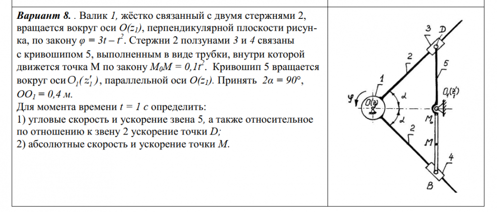 ДЗ 3: Кинематика сложного движения точки вариант 8