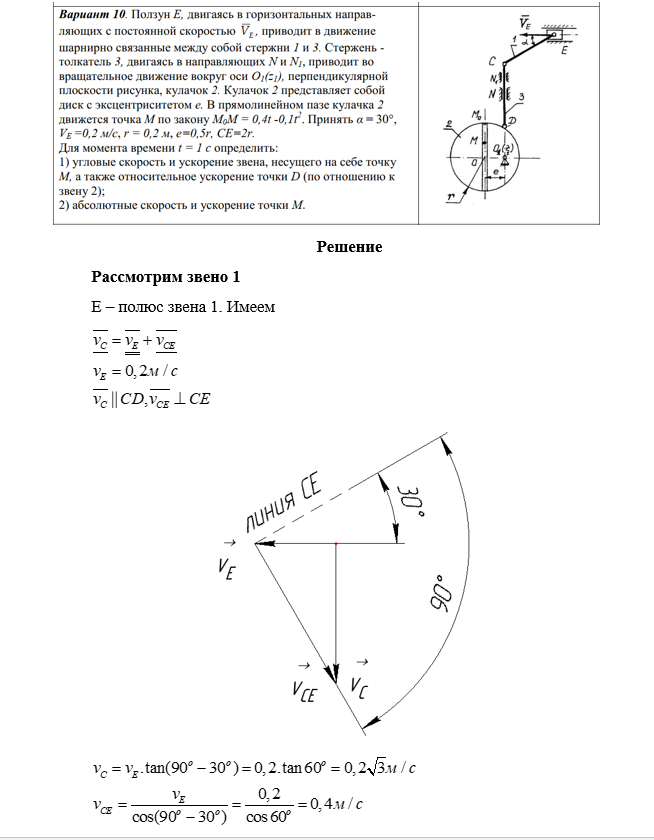 ДЗ 3: Кинематика сложного движения точки вариант 10