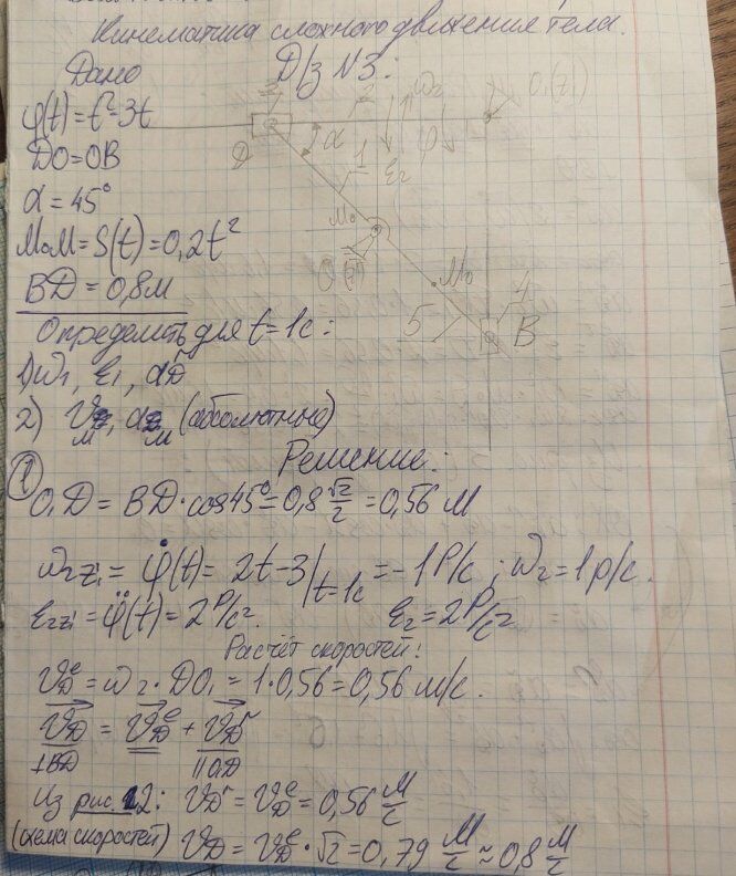 ДЗ 3: Кинематика сложного движения точки вариант 2