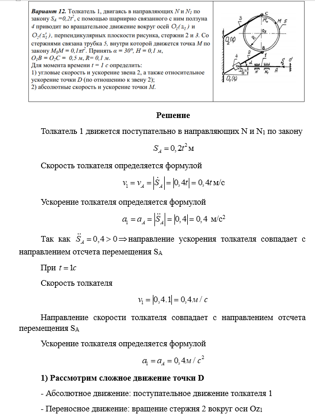 ДЗ 3: Кинематика сложного движения точки вариант 12