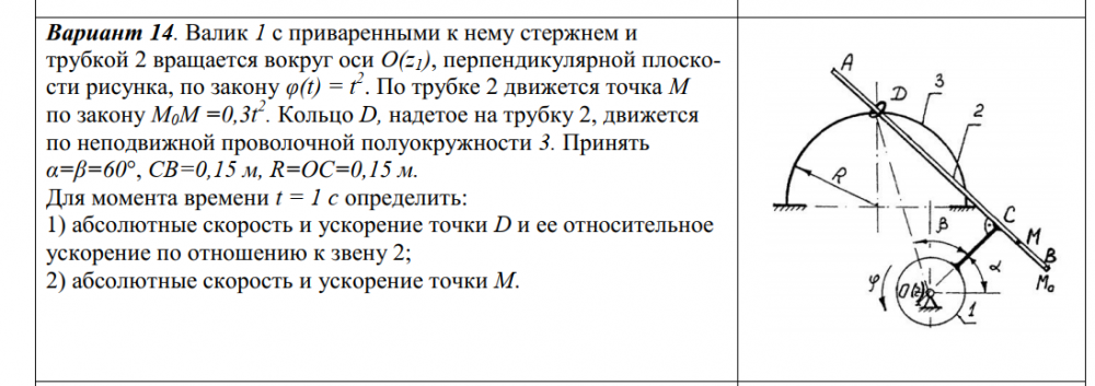 ДЗ 3: Кинематика сложного движения точки вариант 14