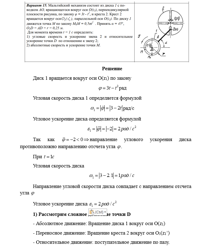 ДЗ 3: Кинематика сложного движения точки вариант 15