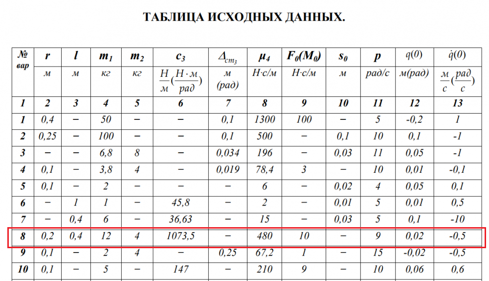 ДЗ 2: Колебания линейной системы с одной степенью свободы вариант 8