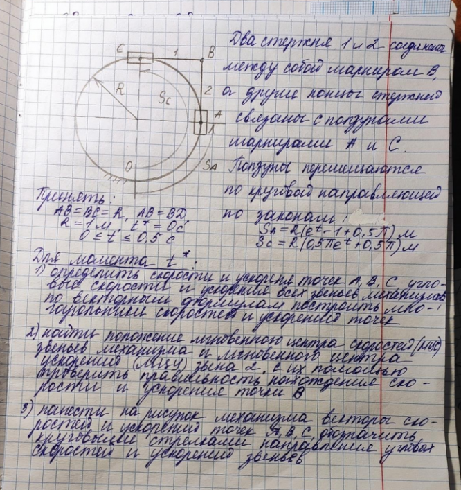 Типовой расчет по теоретической механике, "Кинематика плоского движения твердого тела", зачтено