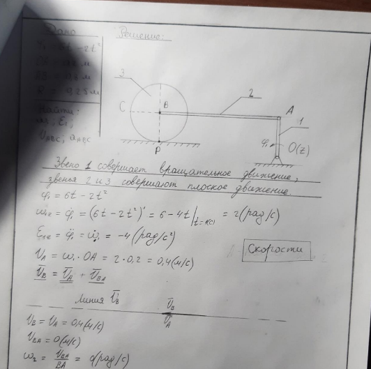 Типовой расчет по теоретической механике, "Кинематика плоского движения твердого тела", зачтено