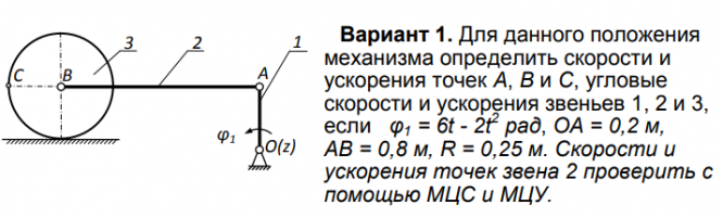 Вариант 1 - Дз-2 "Кинематика плоского движения твердого тела"