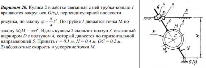 ДЗ 3: Кинематика сложного движения точки вариант 20