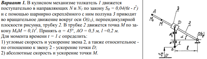 Вариант 1 - Дз-3 "Кинематика сложного движения точки"