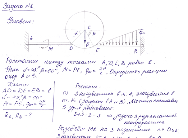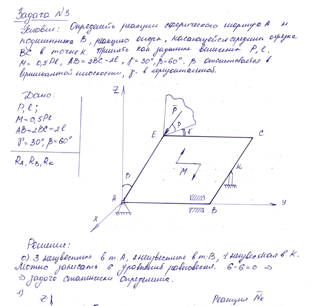 Типовой расчет по теоретической механике, "Плоская и пространственная статика", 4 задачи, зачтено