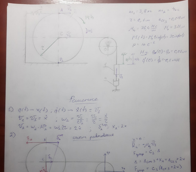 Типовой расчет по теоретической механике, "Колебания линейной системы с одной степенью свободы", зачтено