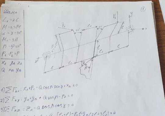 Типовой расчет по теоретической механике, "Плоская и пространственная статика", 4 задачи, зачтено