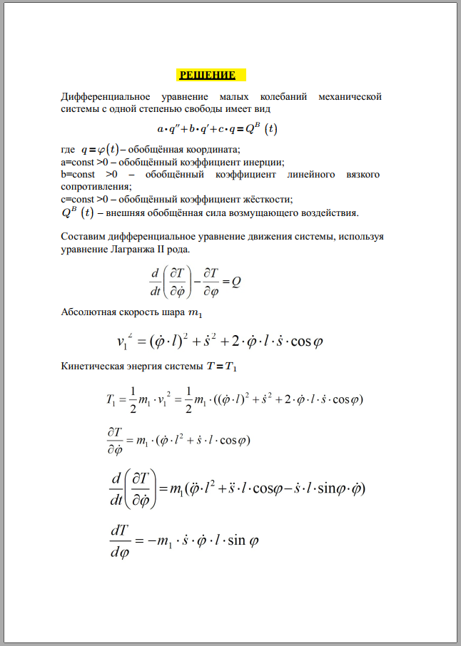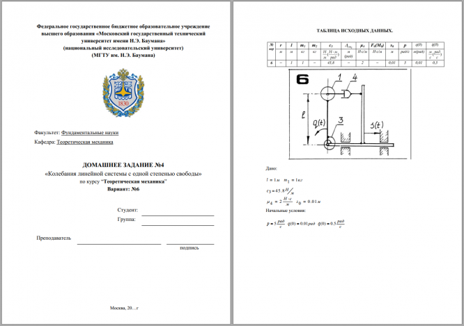 Для студентов МГТУ им. Н.Э.Баумана по предмету Теоретическая механикаКолебания линейной системы с одной степенью свободыКолебания линейной системы с одной степенью свободы