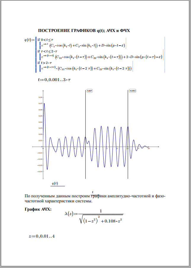 ДЗ выполнено в MathCAD Prime (сохранено в PDF) с построением графиками переходного процесса Q(t) и АЧХ и ФЧХ!