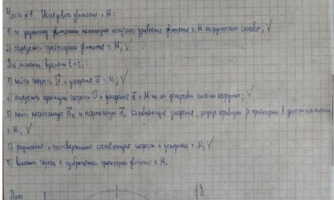 В данном файле - домашнее задание №1 по теоретической механике, принятое Гришко. Качество почерка - посредственное: