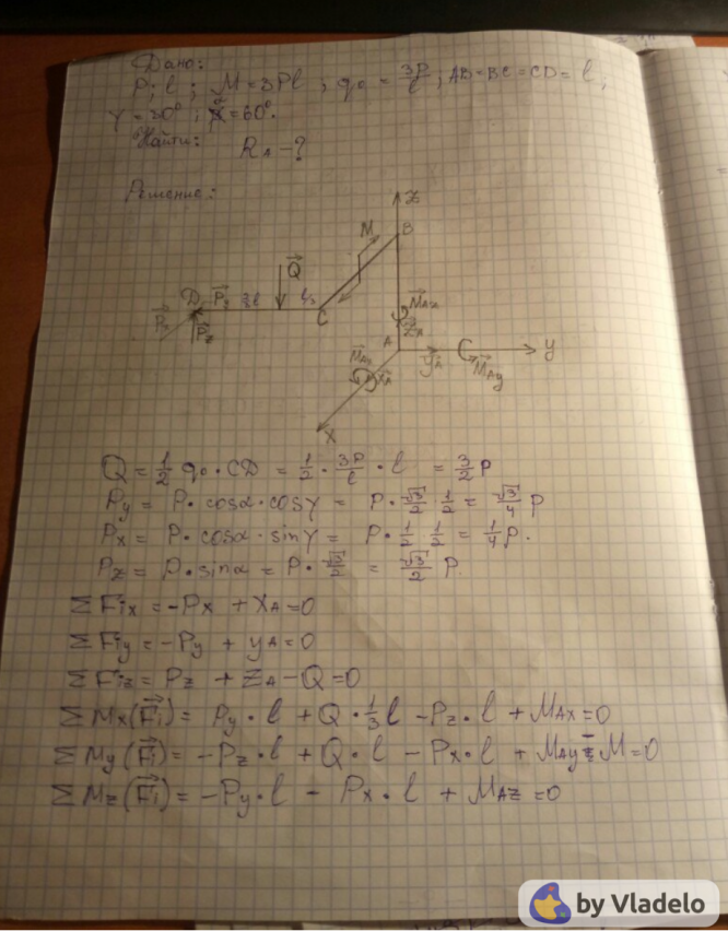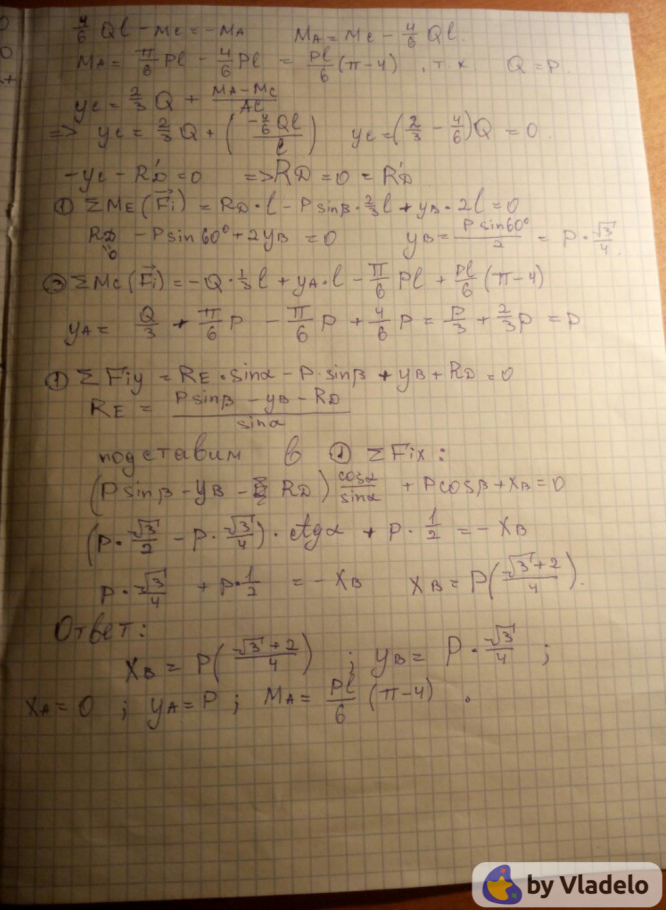 Решенное и проверенное преподавателем ДЗ4 "Плоская и пространственная статика", 15 вариант.