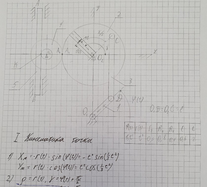 Типовой расчет по теоретической механике, "Кинематика точки и простейших движений твердого тела", 2 части, зачтено