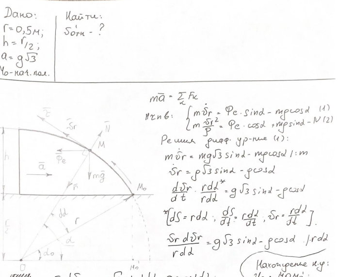 Типовой расчет по теоретической механике №1 "Динамика материальной точки", 1 задача, зачтено