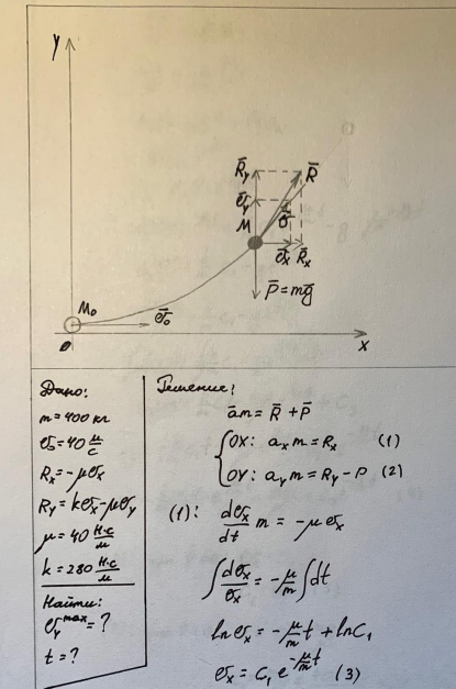 Типовой расчет по теоретической механике, "Динамика материальной точки", зачтено