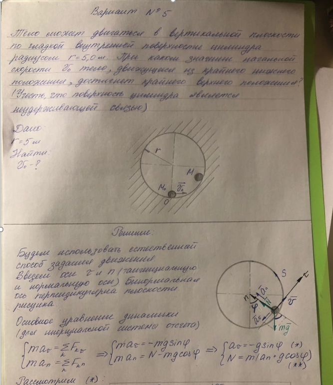 Вариант 5 - ДЗ №1 - Динамика материальной точки