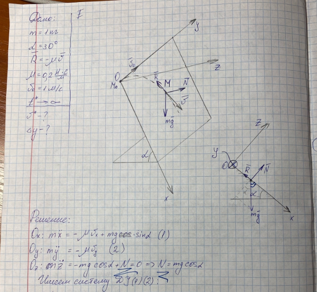 Типовой расчет по теоретической механике, "Динамика материальной точки", зачтено