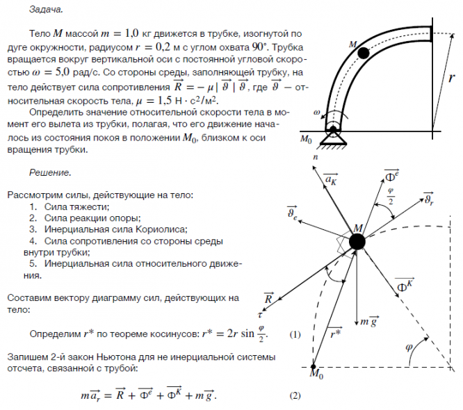 Тело массой движется в трубке, изогнутой по