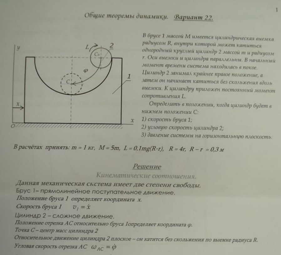 Вариант 22 - ДЗ №2 "Общие теоремы динамики"