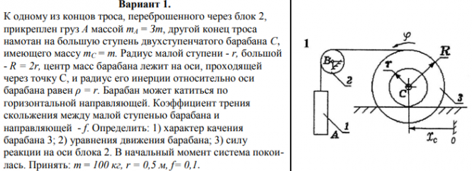Вариант 1 - ДЗ №2 "Общие теоремы динамики"