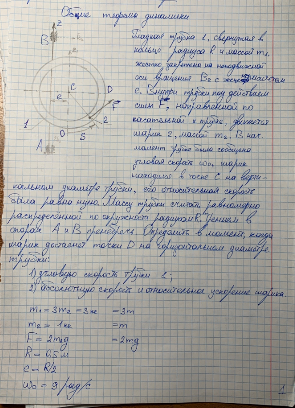 Типовой расчет по теоретической механике, "Общие теоремы динамики", зачтено