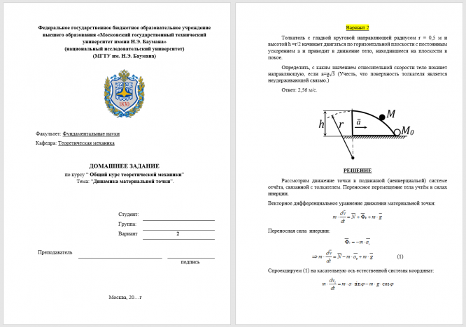 ДЗ 1: Динамика материальной точки вариант 2