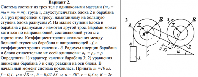 Вариант 2 - ДЗ №2 "Общие теоремы динамики"