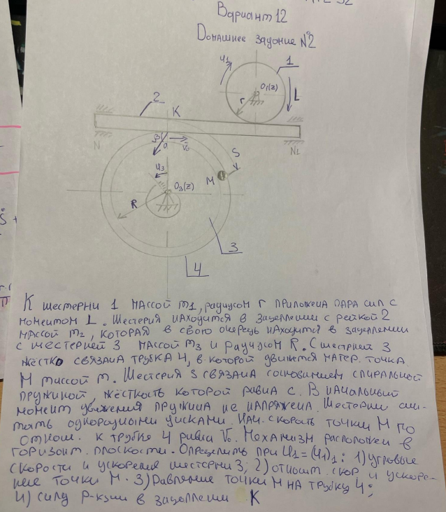 Вариант 12 - ДЗ №2 "Общие теоремы динамики"