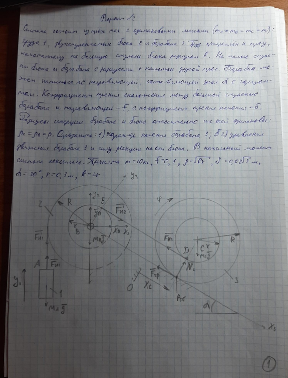 Типовой расчет по теоретической механике №2 "Общие теоремы динамики", 1 задача, зачтено