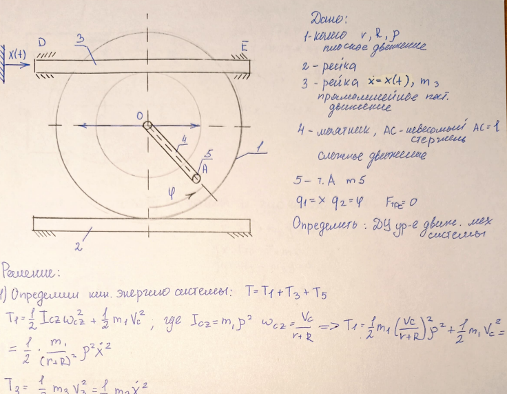 Типовой расчет по теоретической механике №3 "Уравнения Лагранжа 2-го рода", 1 задача, зачтено