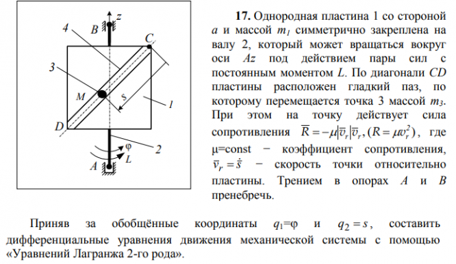 ДЗ 3: Уравнения Лагранжа 2-го рода вариант 17