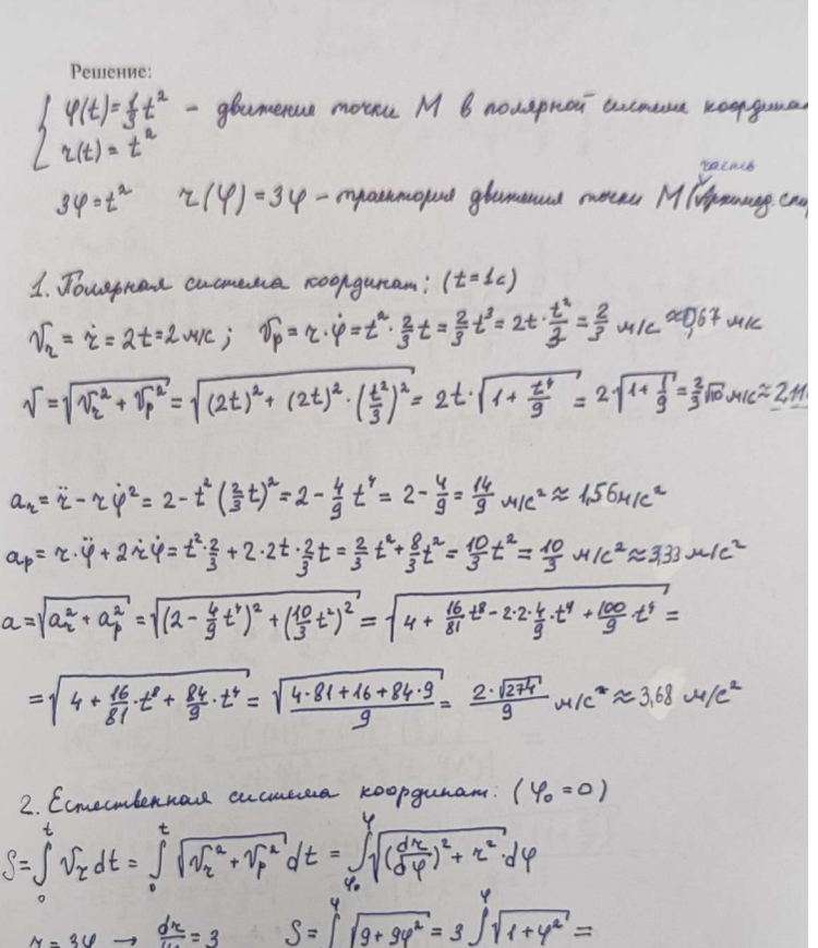 6) найти радиальные и трансверсальные составляющие скорости и ускорения точки M. Начало полярной системы координат нужно поместить в начало декартовой, направив полярную ось по оси Ox;
