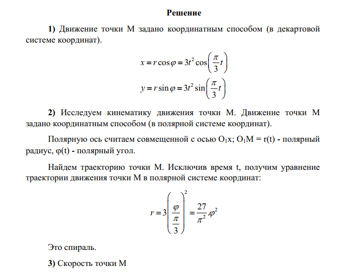 В первой части задания нужно исследовать движение точки M и определить основные характеристики этого движения.Требуется: