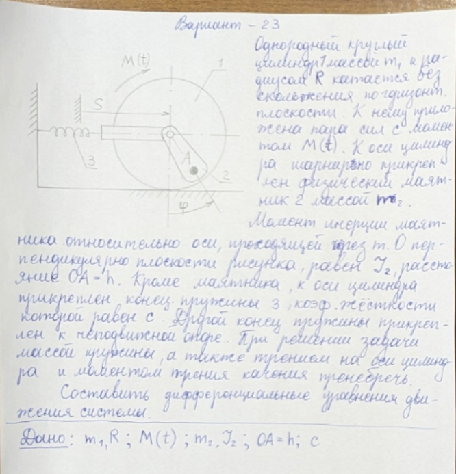 ДЗ 2: Колебания линейной системы с одной степенью свободы вариант 23