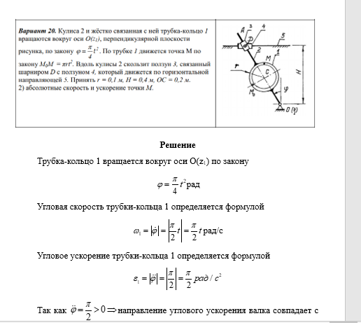 ДЗ 3: Кинематика сложного движения точки вариант 20