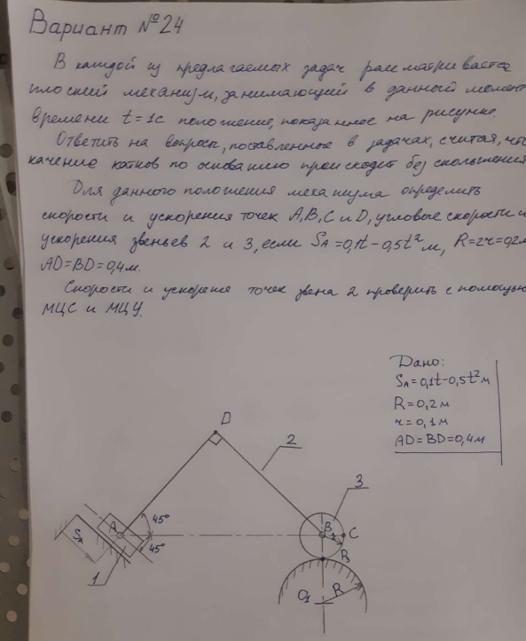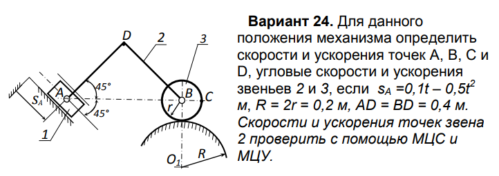 ДЗ 2: Кинематика плоского движения твердого тела вариант 24
