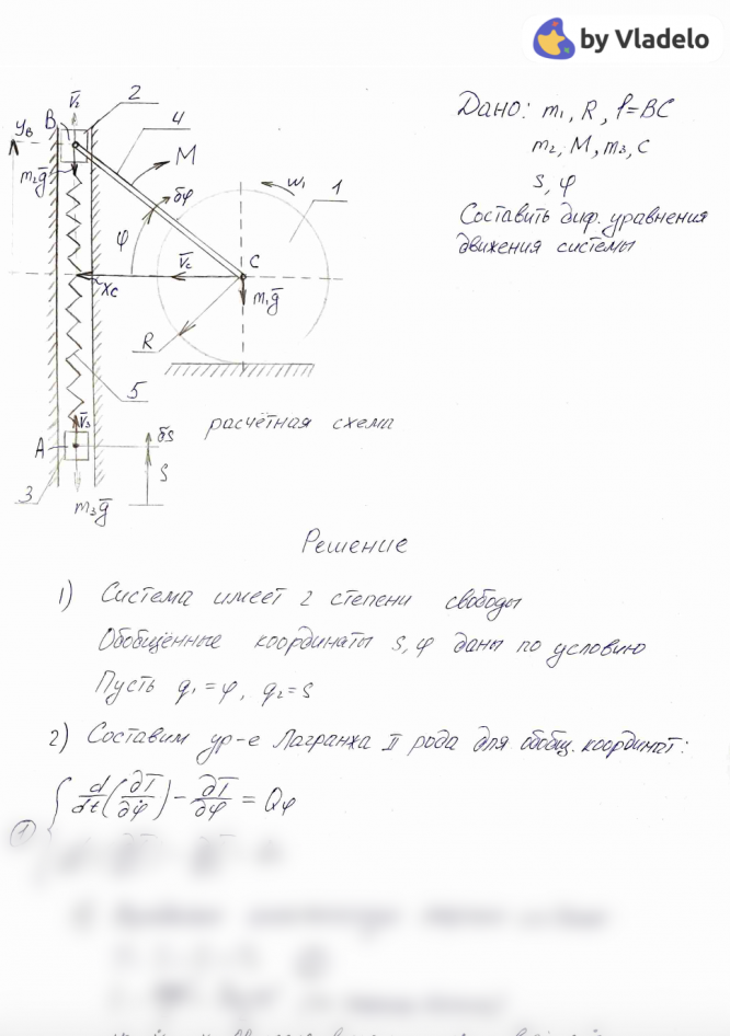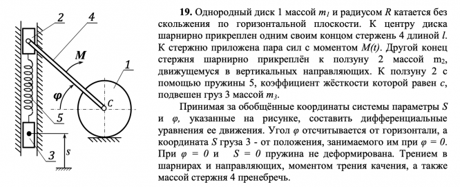 ДЗ "Уравнения Лагранжа 2 рода" для специалистов, 19 вариант