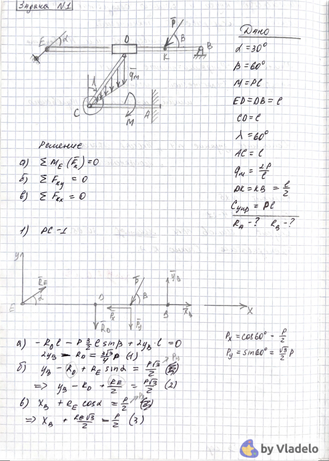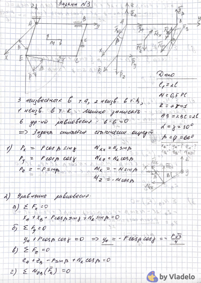 - Подробное решение задач 25.1 (плоская статика ) и 1.25 (пространственная статика)